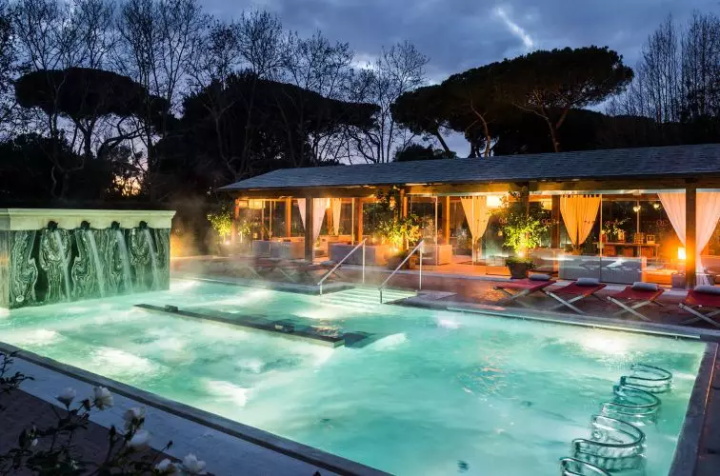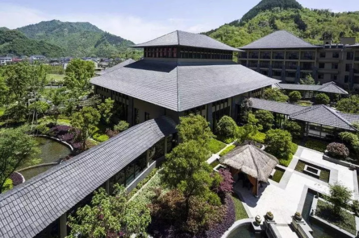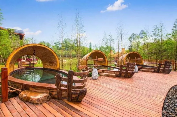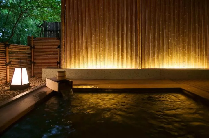 溫泉設(shè)計總體布置形式分類為:集中布置;分散式布;分散式圍合布置(中間有庭院)及混合式布置。