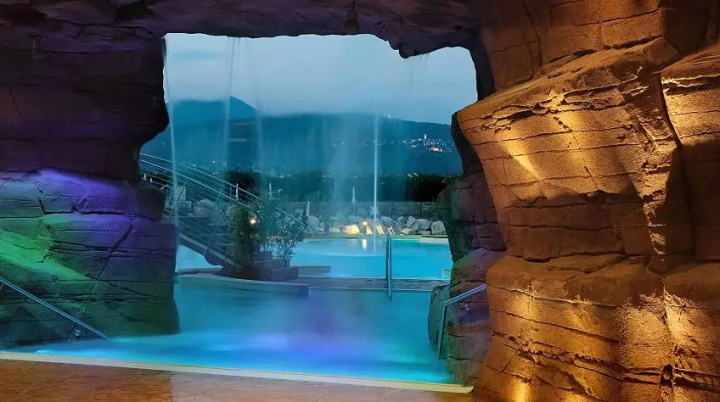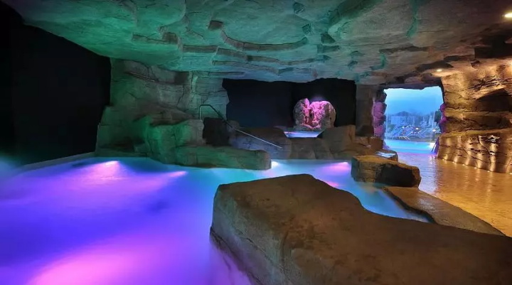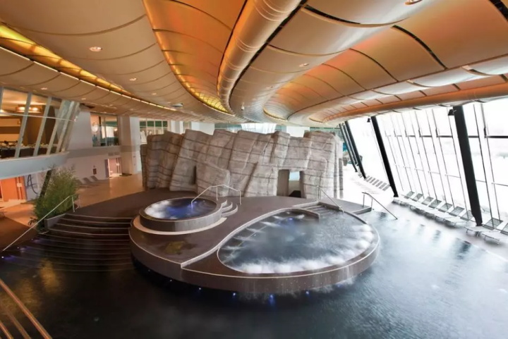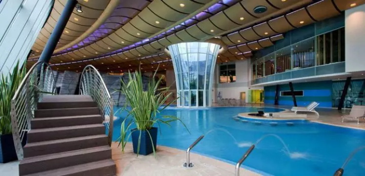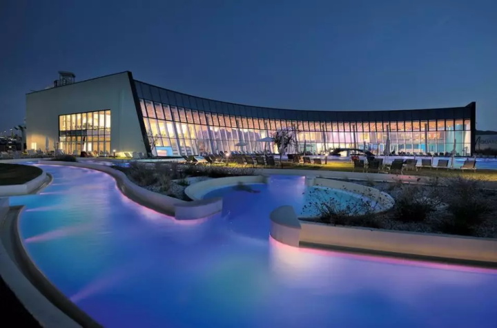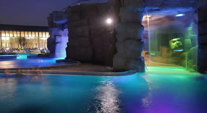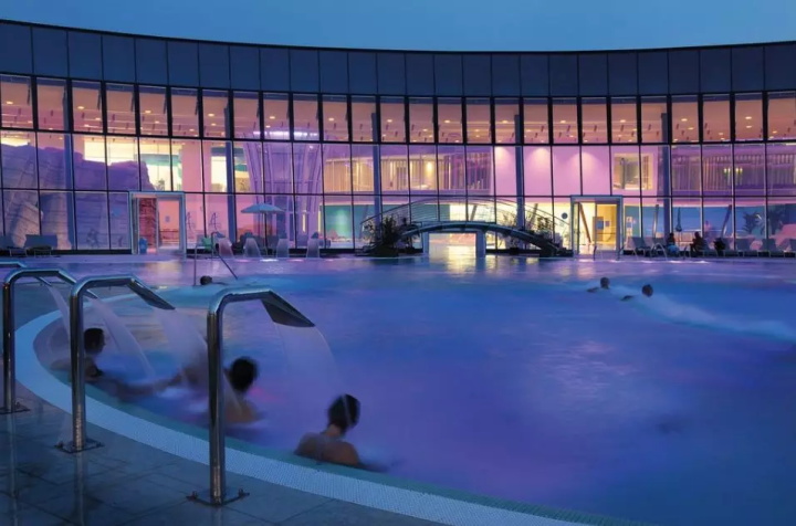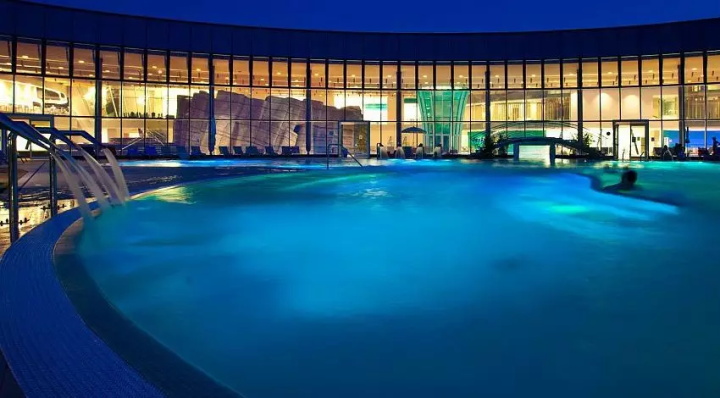 溫泉水療主館占地8000㎡,包括溫泉池,隔離水盆,小海灣,緩慢的溫泉河配備水力按摩和治療射流,提供內(nèi)外移動的刺激和魅力。色光療法洞穴,鹽池(來自死海的水)和洞穴中的瀑布代表了旅程中各種迷人的景點。