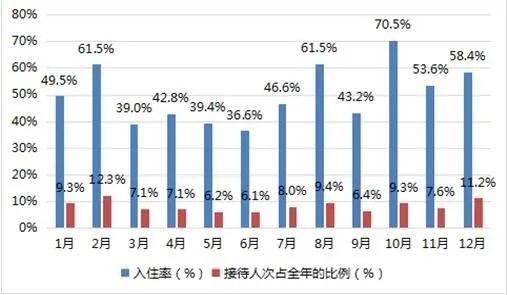 圖1 2018年1月-12月溫泉企業(yè)的入住率及接待人次占全年的比例