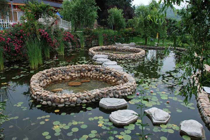 溫泉水體是溫泉景觀中的重要元素,山水結(jié)合,泡池在森林中既是泡池,也是景觀水池,如云南彌勒的湖泉溫泉,泡池依地勢而建造,溫泉設(shè)施分散在森林中,泡池以自然形態(tài)為主,純自然景石圍合,游客在森林半山中的溫泉泡浴時,可俯瞰浩渺的湖泉湖,湖光山色,景觀獨(dú)特,體驗(yàn)自是不同。
