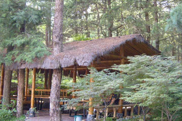 建筑景觀的特色是以自然材料和傳統(tǒng)的木結(jié)構(gòu)為主,建筑體量小巧、精致,融入森林環(huán)境。為使建筑在整體上有回歸自然的感覺,森林溫泉景觀的建筑體量不應(yīng)過大,也不應(yīng)有較大規(guī)模的商業(yè)建筑存在,能夠滿足游客休息、娛樂的需求即可。